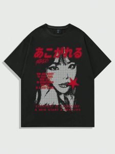 Áo Thun Streetwear Form Rộng “Gothic Aesthetic” Cô Gái Kinh Dị (Màu Đỏ)