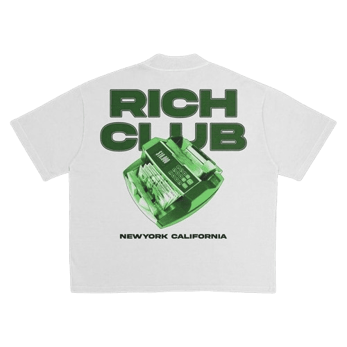 Áo thun Rich Club Money Counter Tee form oversize, chất cotton mềm mịn, thoáng mát. Graphic máy đếm tiền màu xanh nổi bật, phong cách streetwear cá tính, unisex.