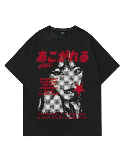 Áo Thun Oversize Streetwear Nữ/Nam In Hình Graphic Phong Cách Harajuku Đỏ Đen