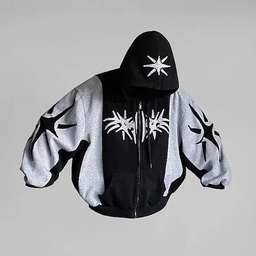 Zip-up Hoodie Streetwear Phối Màu “Star Spike” Oversize (Đen/Xám)
